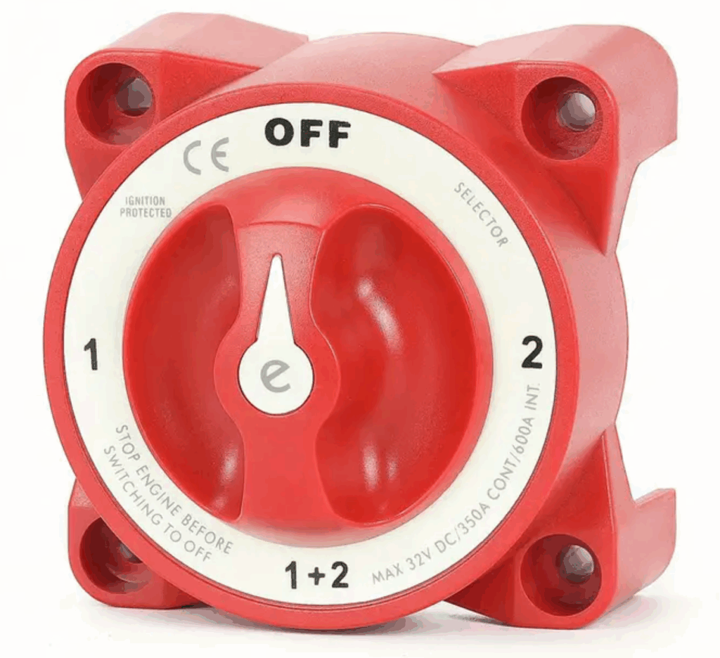 3 Veis bryteren er en ganske enkel og efektiv løsning, så sant men husker å stille bryteren riktig. Ved bruk av treveisbryter, så har man typisk organisert batteriene i from av 2 batteribanker, gjerne “1. Startbatteri” og “2. Forbruk”. Ved hjelp av 3-veis bryteren, så kan man enten koble opp en av de to batteribankene, eller begge to.