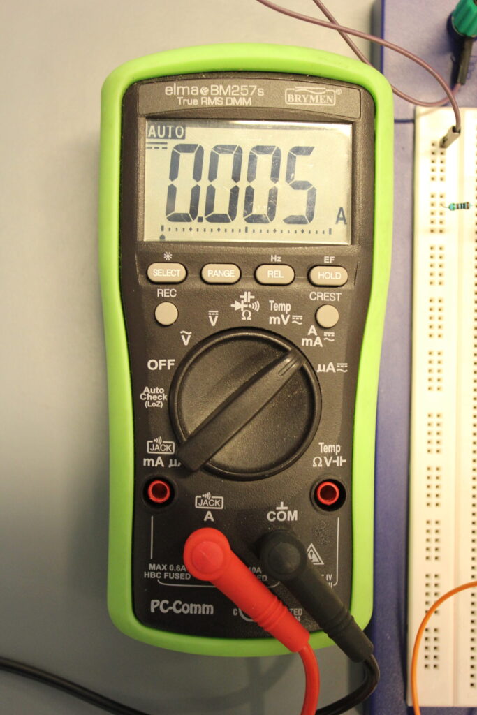 Måling av en liten strøm i milliampereområdet med multimeter: