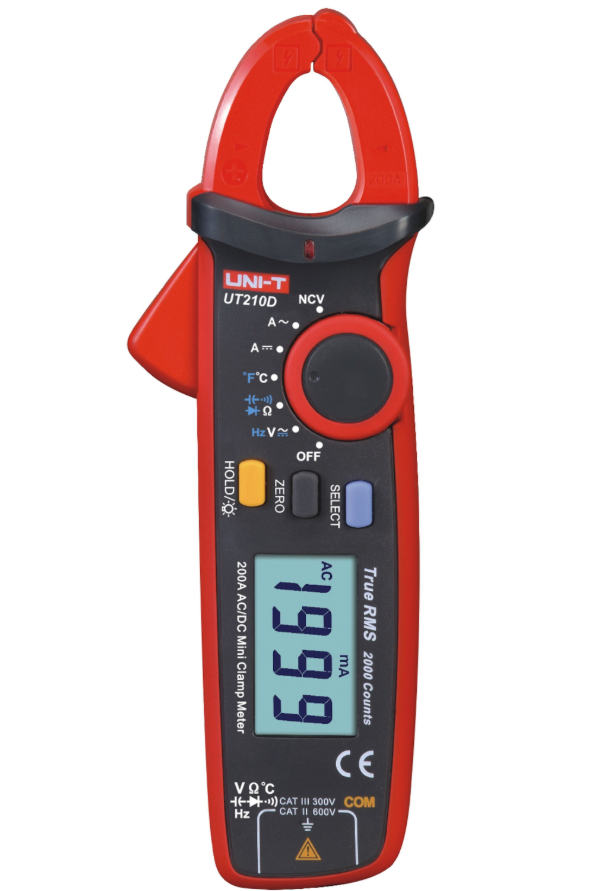 For måling av litt større strømmer, så bruker vi et helt annen type instrument, et tangamperemeter. Vi plasserer da “tanga” rundt den enkeltlederen som leder strømmen. Tangamperemeteret virker på den måten at det måler magnetfeltet rundt lederen;